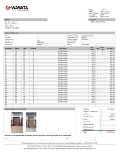 تم تقديم عرض سعر ( 100 باب خشبي داخلي قياسات خاصة ) الى مصنع تاج طيبة بتكلفة 135 دولار للباب الواحد دون الشحن والاكسسوارات … تفاصيل العرض في الصورة